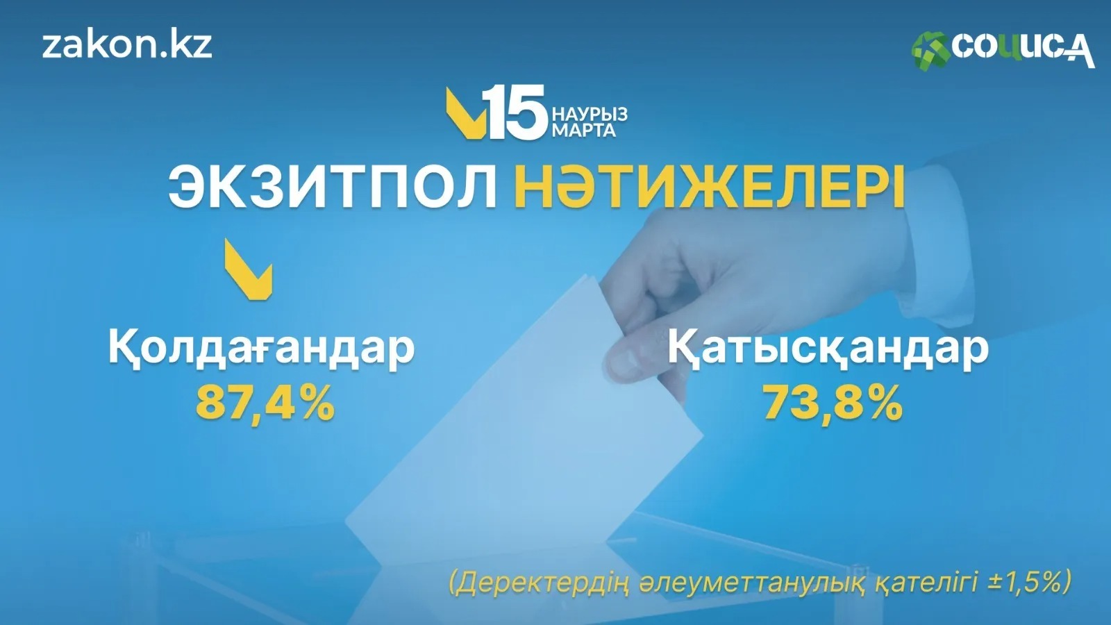 "Социс-А" ҚР жаңа Конституциясын қабылдау жөніндегі референдумдағы экзитпол нәтижелерін жариялады
